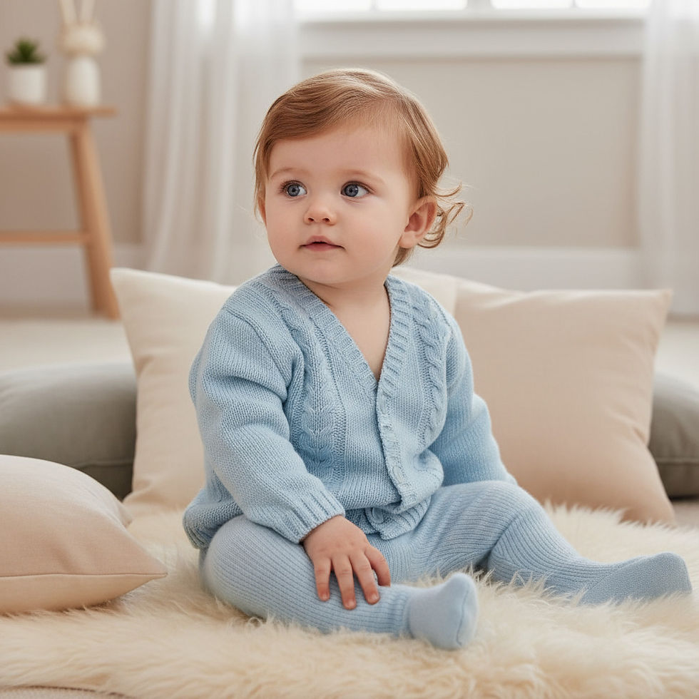 Baby Boy Cardigan Spanish Knitted Cable Traditional Blue White Beige