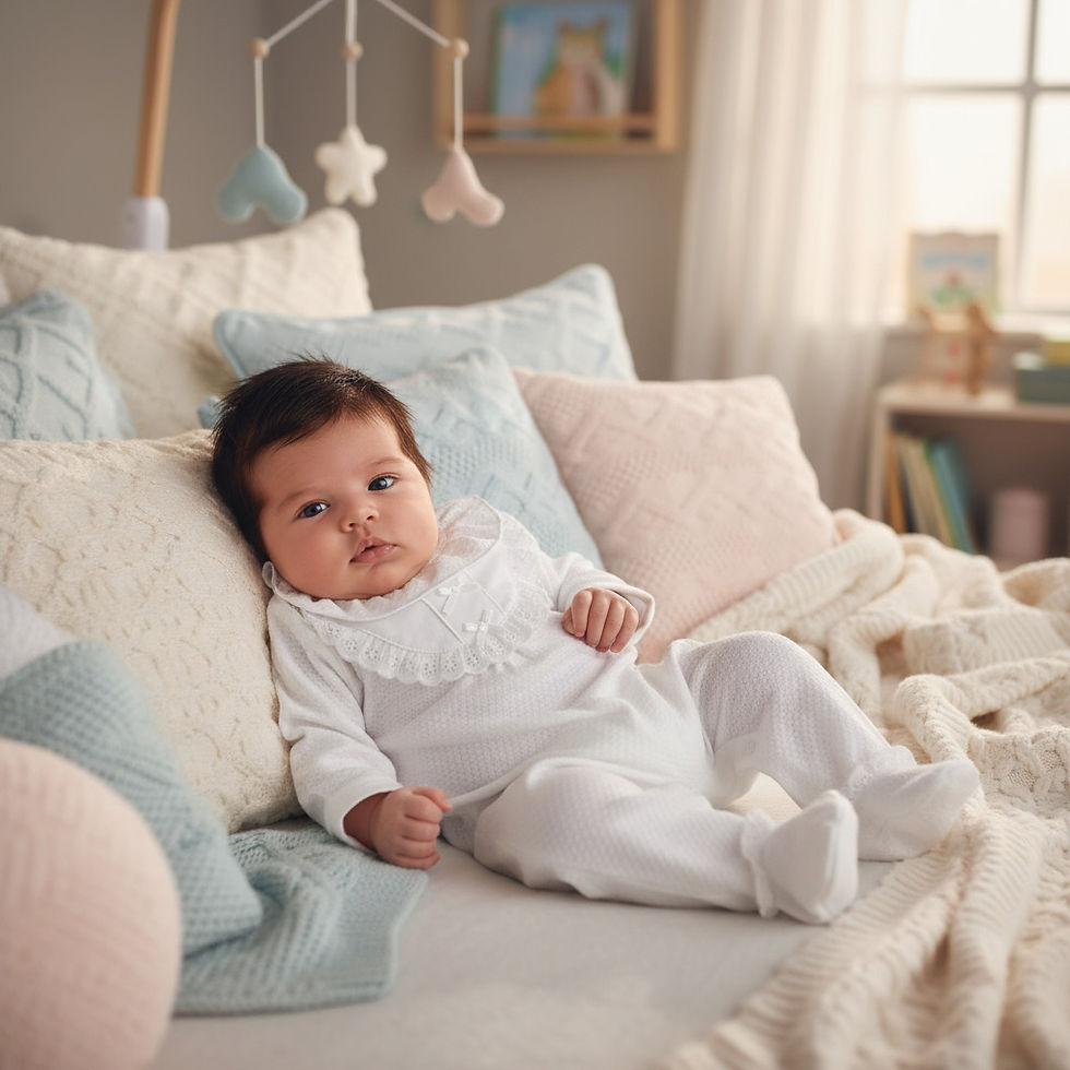 Baby Girl Dress Jam Pants Set Outfit Spanish Frilly Lace Bow Cotton Ivory