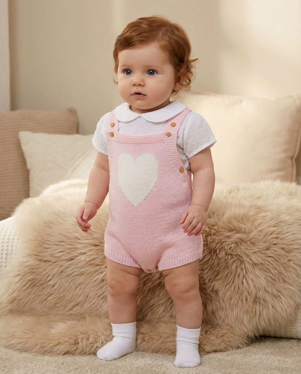 Baby Girl Spanish Knitted Dungaree Romper Blouse Heart Ninas y Ninos Pink White