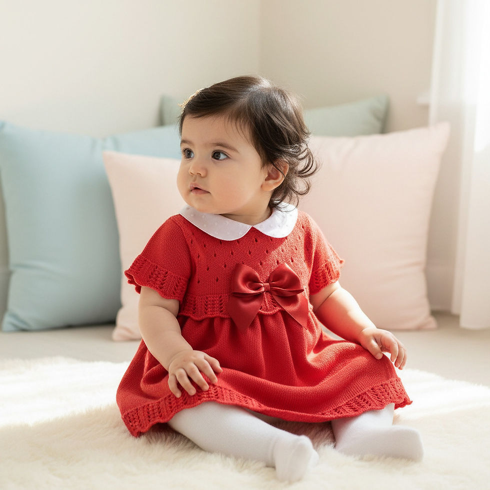Baby Girl Dress Knitted Spanish BOW Watermelon 100% COTTON - SMALL FITTING